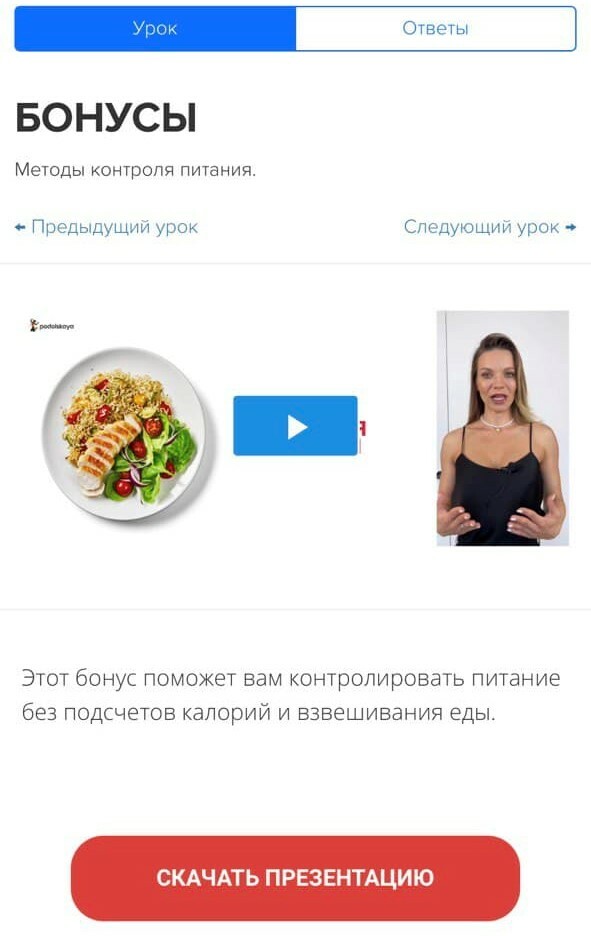 2. Урок "Методы контроля питания без подсчета калорий".